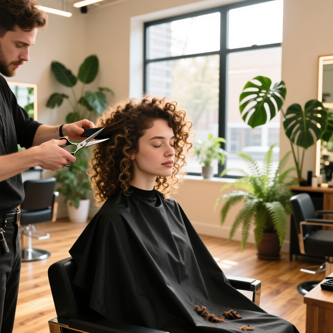 Результат — стрижка, которая не требует сложной ежедневной укладки. Ваши кудри ложатся естественно, сохраняя объём и форму в течение нескольких месяцев.